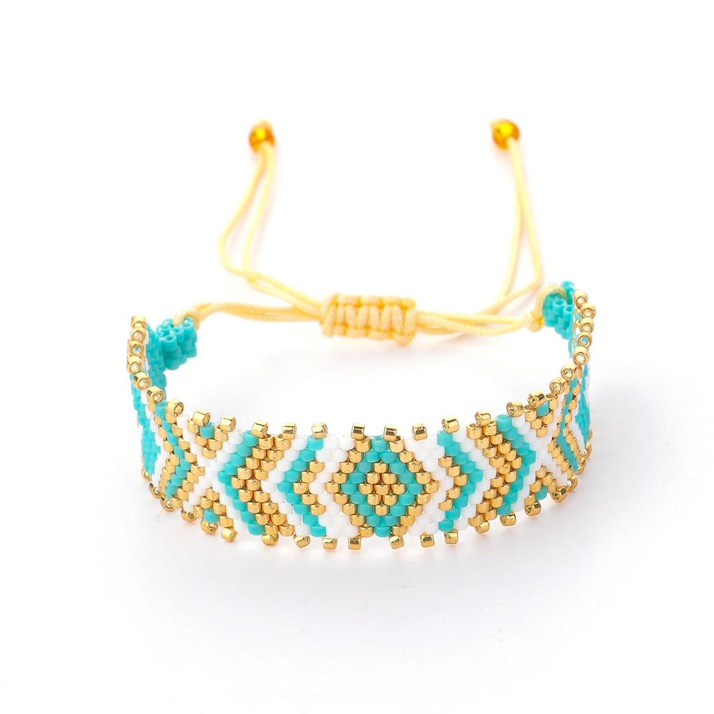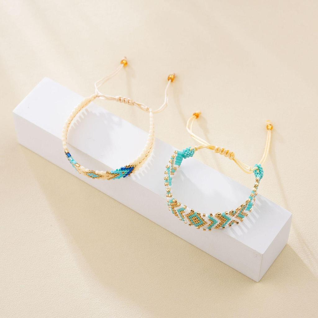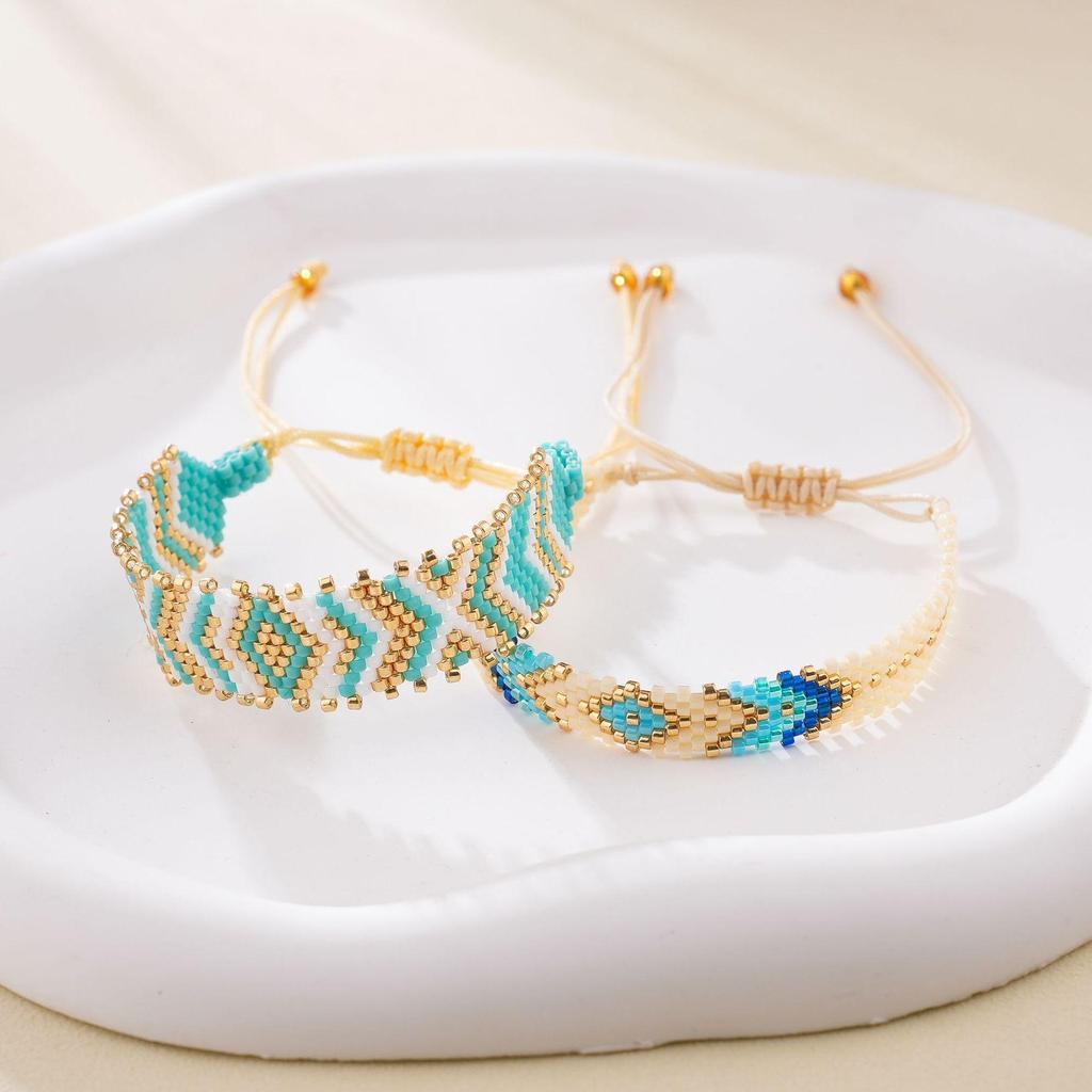 Браслет из рисовых бусин в богемном этническом стиле, плетеный вручную браслет из бисера, женский браслет, соответствующий цвету, геометрический браслет