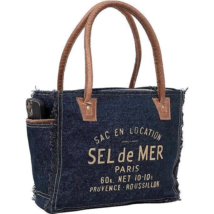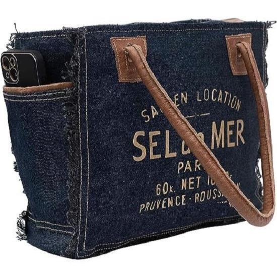 Сумки Sel De Mer Ручная сумка из переработанного холста Большая сумка из переработанного холста и воловьей кожи Сияющая кожаная сумка из переработанного холста