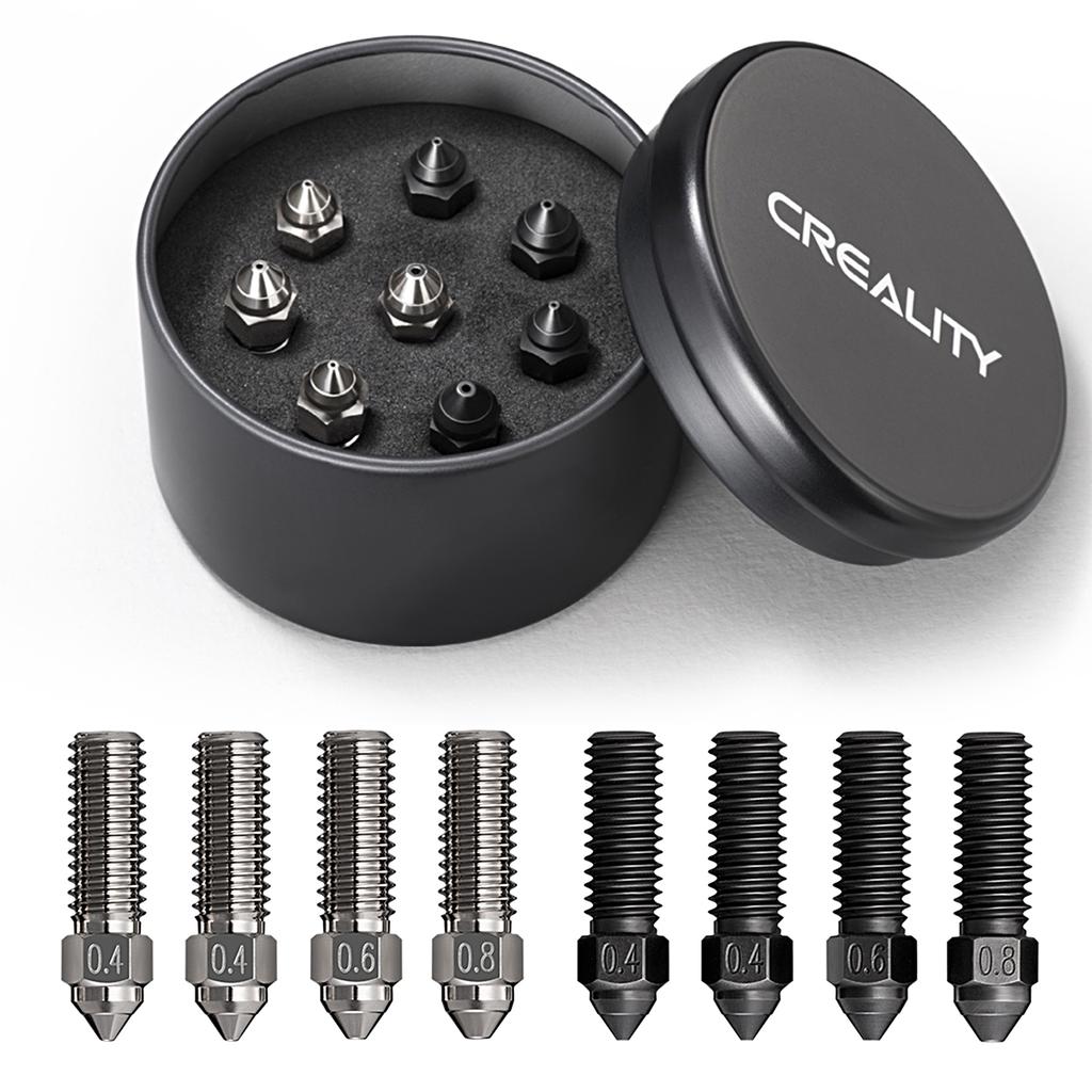 То, что вы получаете: 8 шт. Насадки разных размеров. 2 х 0,4 мм сопло из медного сплава, 1 х 0,6 мм сопло из медного сплава, 1 х 0,8 мм сопло из медного сплава, 2 х 0,4 мм сопло из закаленной стали, 1 х сопло из закаленной стали 0,6 мм.