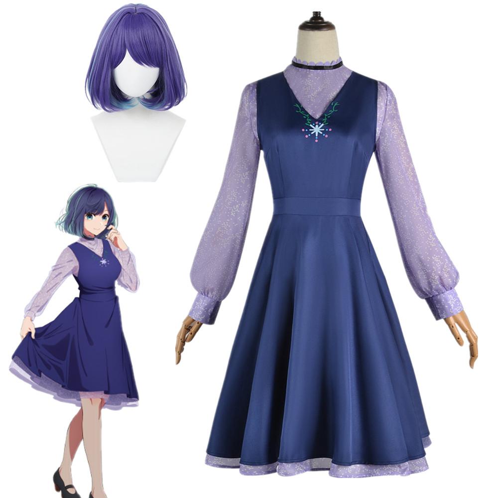 Аниме Oshi No Ko Akane Kurokawa Косплей Костюм Синее Платье Хосино Акуамарин Хэллоуин Вечеринка Женская Одежда Для Девочек