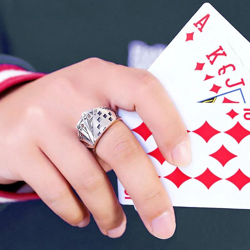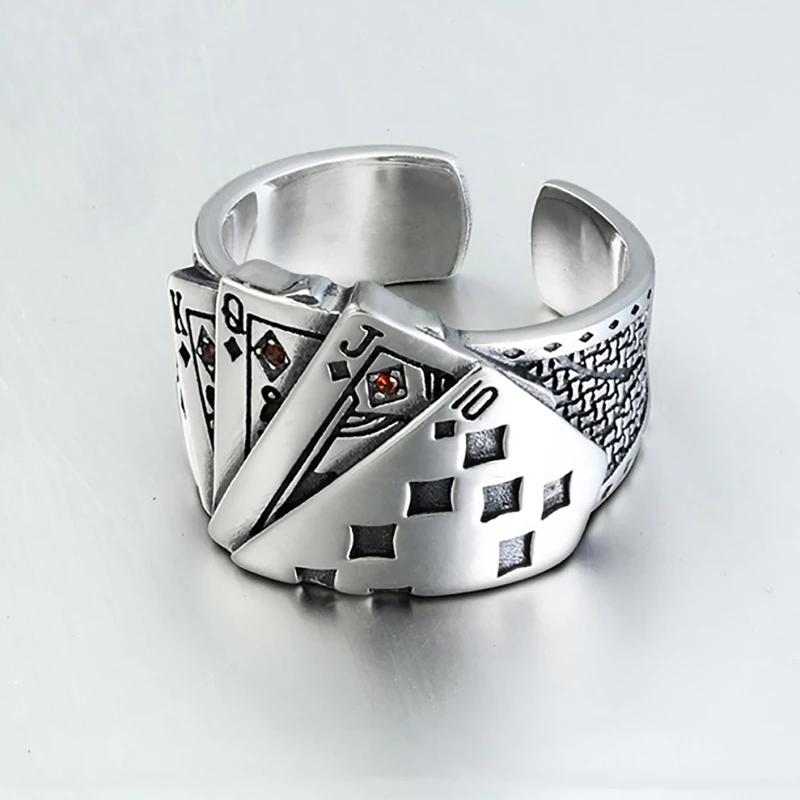 Модные преувеличенные открывающиеся кольца для игральных карт и кристаллов на палец для мужчин и женщин, винтажные покерные вечерние кольца в стиле панк