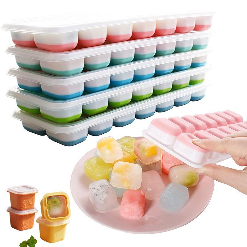 Подносы для кубиков льда Многоразовые силиконовые формы для кубиков льда Фруктовый ледогенератор с водонепроницаемыми съемными крышками Кухонные инструменты