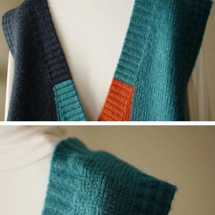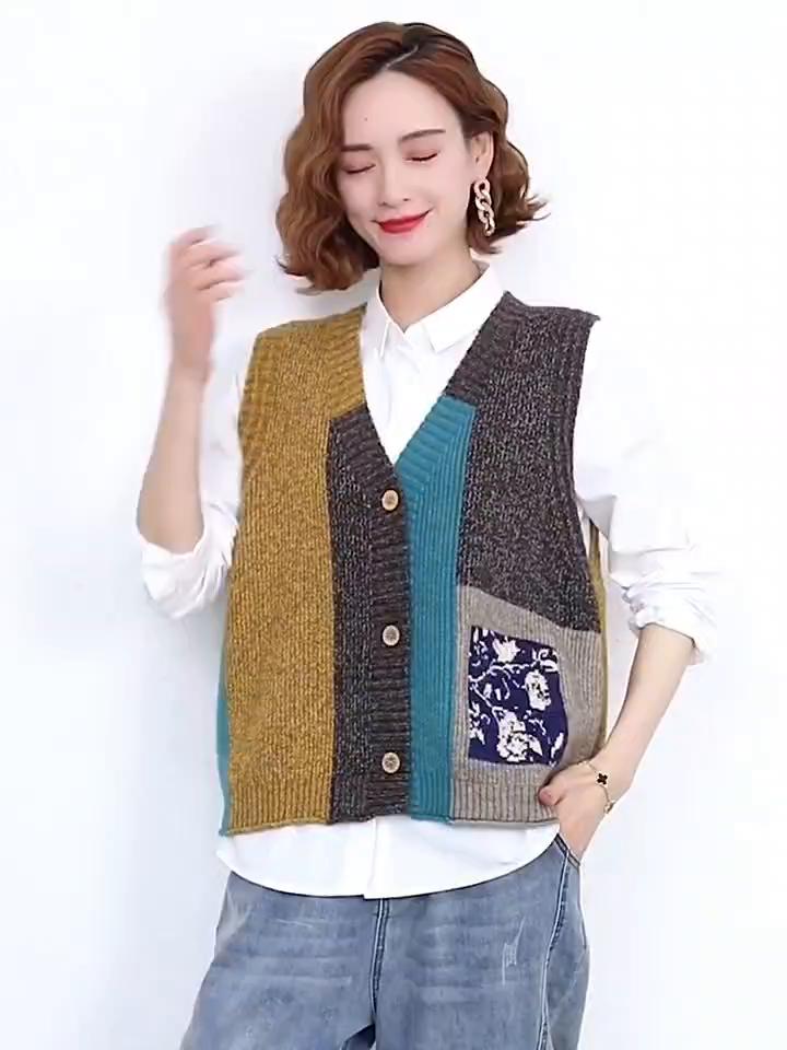 Женский весенне-осенний вязаный жилет с v-образным вырезом, свитер без рукавов, кардиган с лацканами и принтом, жилет-свитер