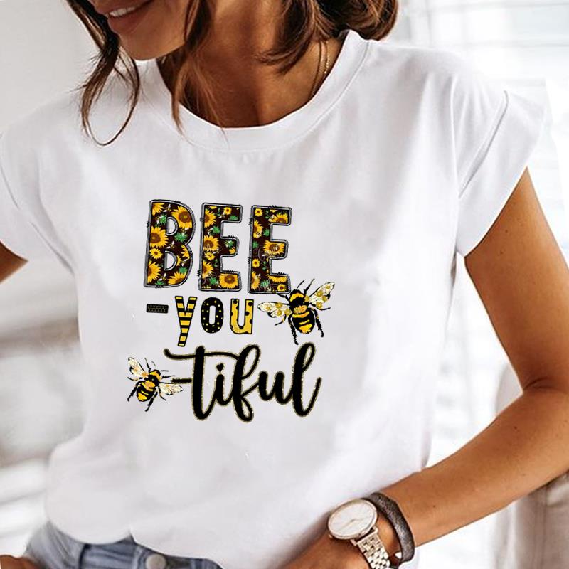 (Азиатский размер) Футболка с коротким рукавом, модная футболка, женская футболка с надписью «Пчела», милая милая одежда, повседневная женская футболка с принтом, женская футболка с графикой
