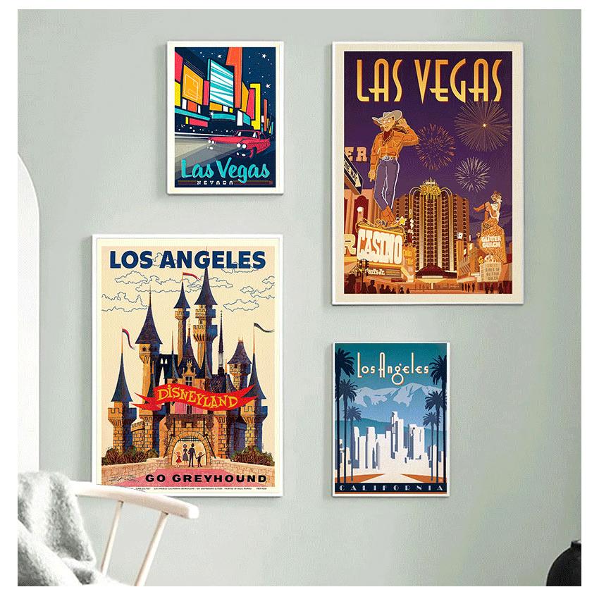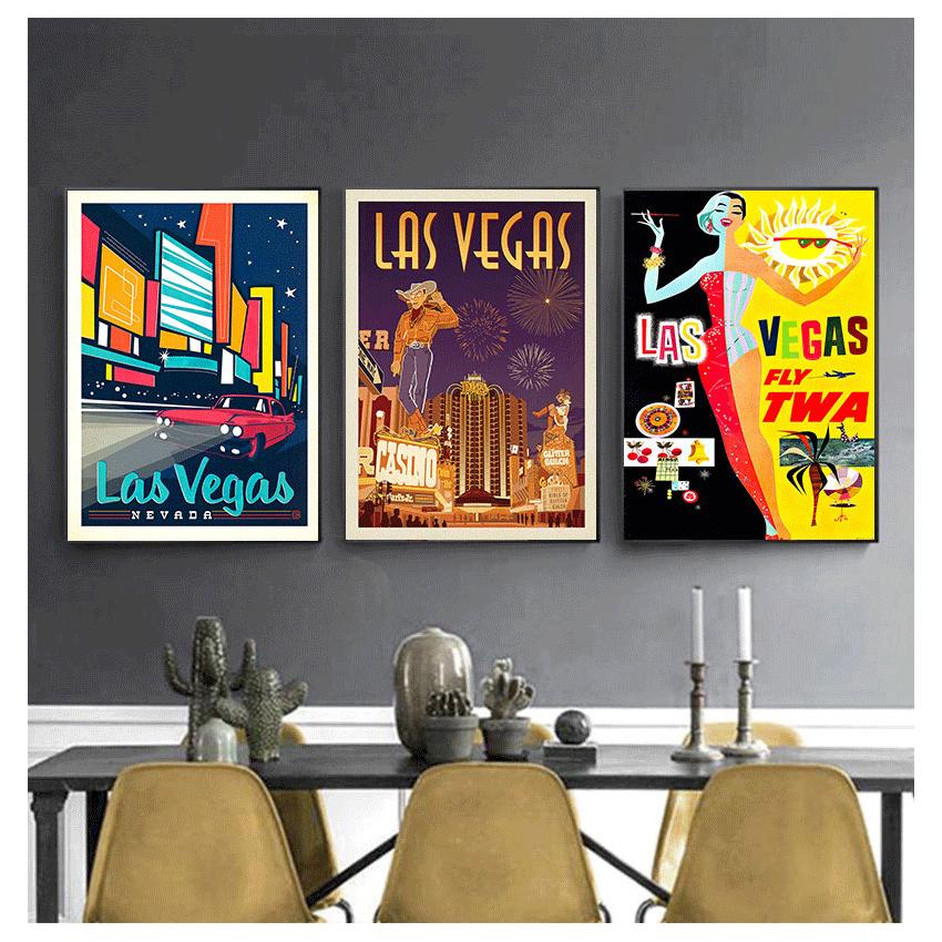 Винтажные настенные крафт-постеры с покрытием, настенные наклейки, домашний декор, фотографии, подарок, Америка, Лас-Вегас, городской туристический плакат, холст, картины