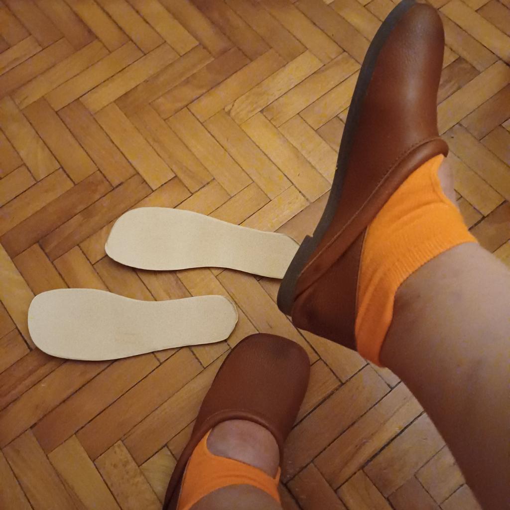 Рискнула и заказала туфельки. Размер 37. Так как у меня высокий подъем, чувствую давление. Но вот сняла толстую стельку и стало легче. Попробую так потаскать дома. Плохо ,что мастера не дают нормально цифры на длину, ширину , подъём ноги. Надо угадывать. Ведь берём БЕЗ ПРИМЕРКИ эту обувь. Думала и другое заказывать, но теперь сомневаюсь из-за расхождений. Очень жаль,что не могу и дома их носить. Жмут в объёме ноги. Всё это зря. Сегодня поставила ещё одну звёздочку. Смогла надеть и походить в туфлях, но без стелек. Может растянутся