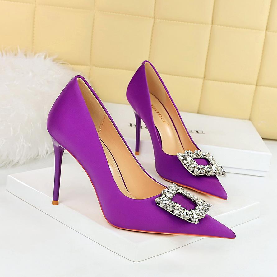 Европейская и американская модная банкетная женская обувь на высоком каблуке, тонкий каблук, супер высокий каблук, с неглубоким ртом и заостренной головкой, женские одиночные туфли с ромбовидными пуговицами — купить товар онлайн с бесплатной доставкой до всему миру!