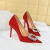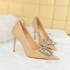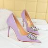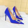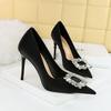 Европейская и американская модная банкетная женская обувь на высоком каблуке, тонкий каблук, супер высокий каблук, с неглубоким ртом и заостренной головкой, женские одиночные туфли с ромбовидными пуговицами