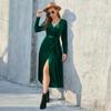 GMXIA Новое стильное женское осеннее и зимнее бархатное платье средней длины с разрезом на бретельках и косточками