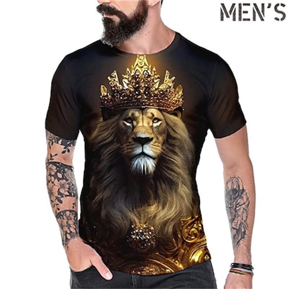 Летняя мужская футболка с 3d короткими рукавами, верхний пуловер «Король леса, лев», одежда в стиле Харадзюку, уличная повседневная винтажная футболка