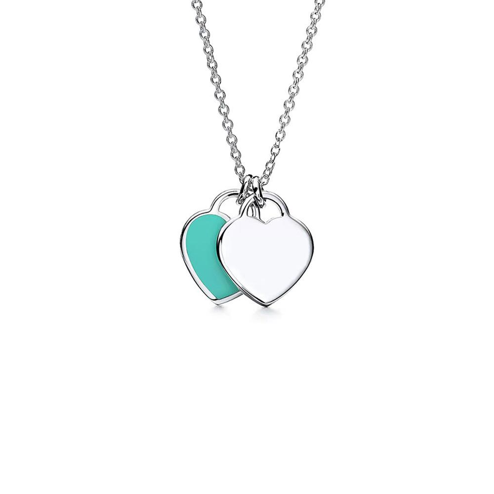 Ожерелье Love Женское Титановая Сталь Эмаль Двойное Сердце Подвеска Цепочка Воротник Синий Розовый Свет Роскошное Простое Ожерелье Ювелирные Изделия, лучший подарок для Друзей