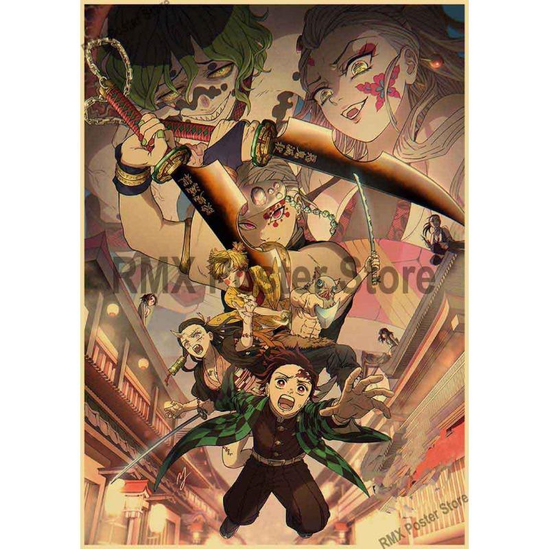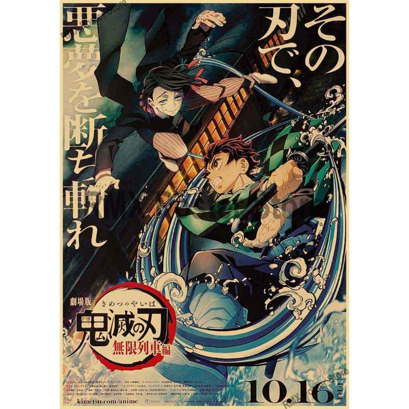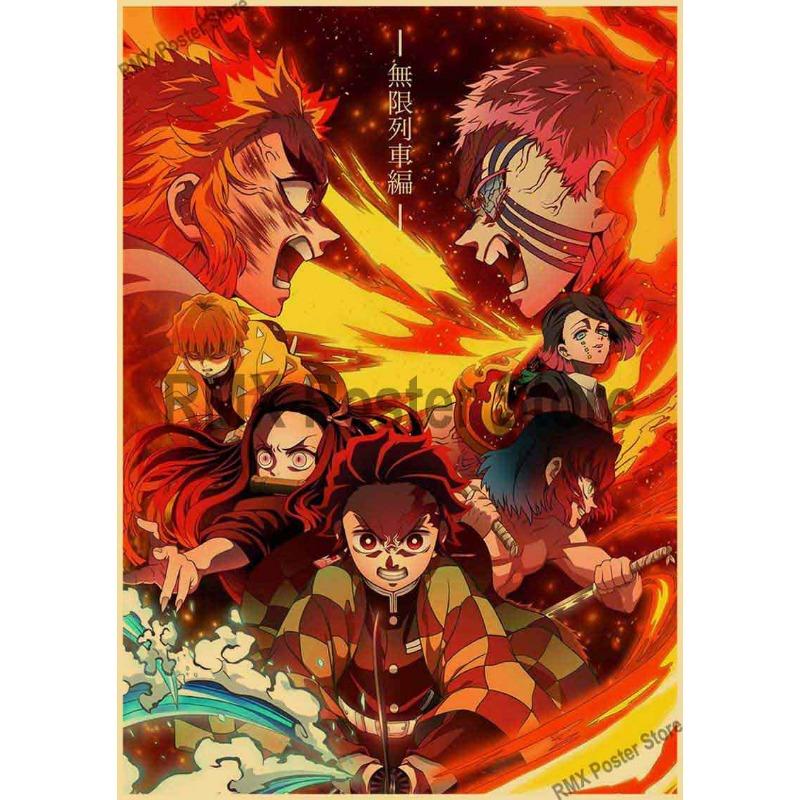 Горячие комиксы из фильма «Убийца демонов», постеры с поездом Муген, крафт-бумага, ретро аниме-плакат, настенный художественный декор, домашняя комната, бар, живопись, наклейки