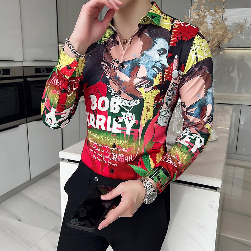 Новая рубашка Европейская и американская популярная рубашка Мужская рубашка с длинными рукавами с персонализированным принтом