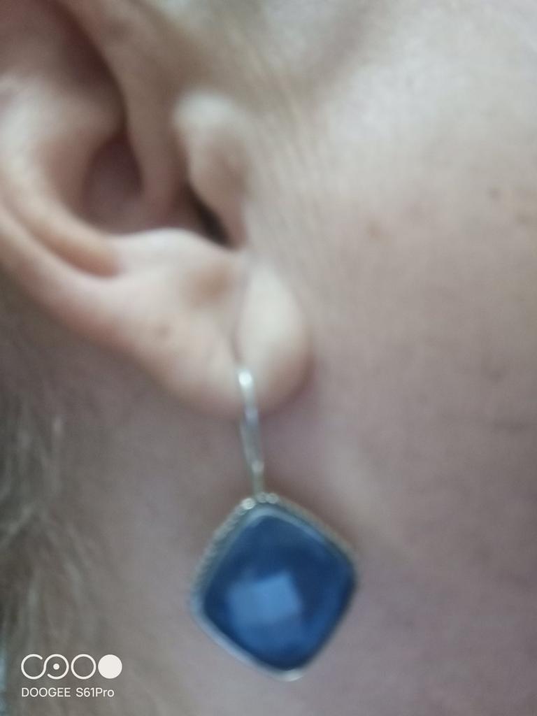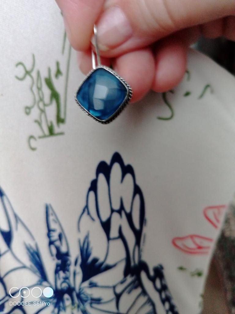 Сережки не плохие. На серебре есть проба. Камень натуральный полудрагоценный, поэтому полупрозрачный, но выглядит натурально, как и должно быть. Очень удобная, простая застёжка, сзади одевается крючок в петельку. Можно легко подправить в нужную сторону. Тяжеленькие. Смотрятся неплохо. Натуральное серебро, без родирования. Я довольна. За эту цену товар достоин, чтобы купить. Спасибо Джуму.