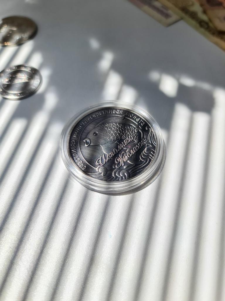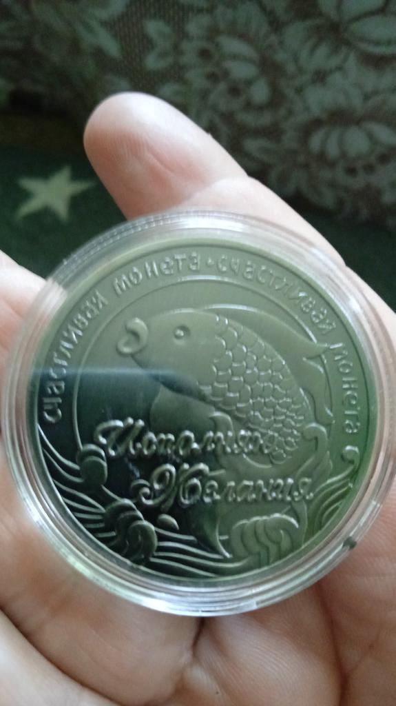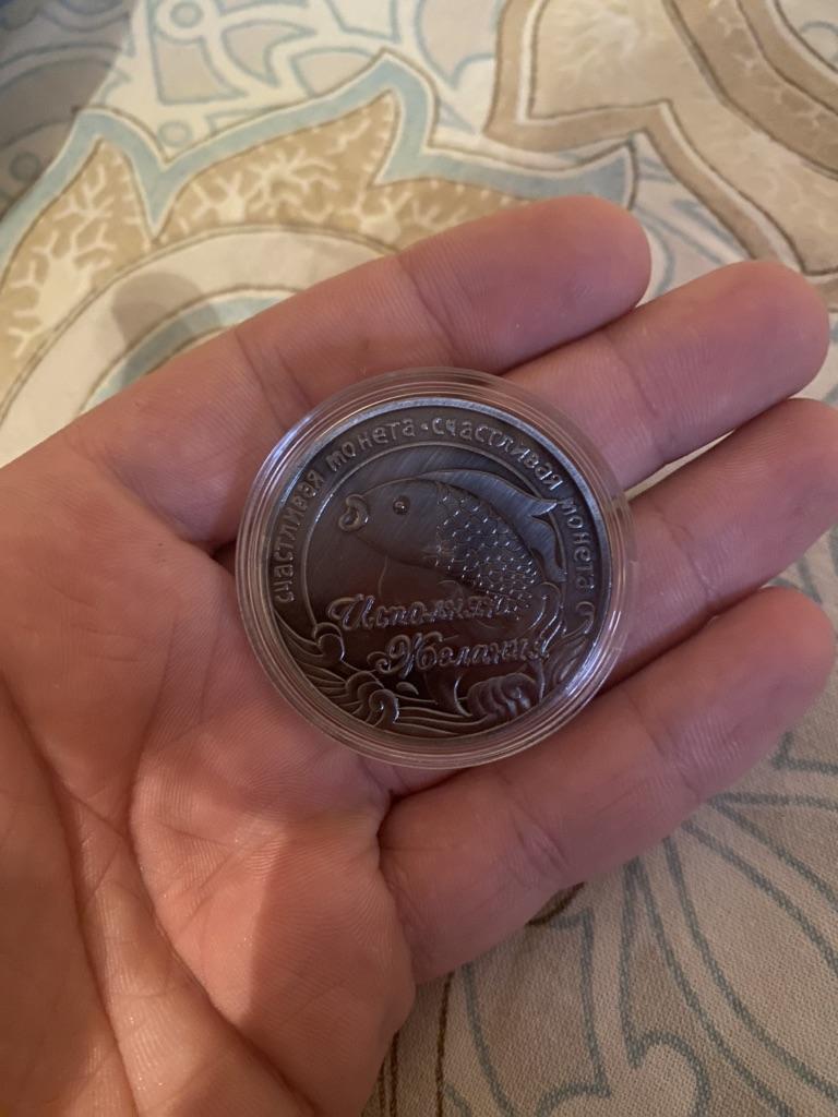 Выиграла за 1 рубль монету с карпом, когда эту монету увидела она мне так понравилась, даже не ожидала что выиграю, но было приятно и радостно что выиграла эмоции радости были!!!!