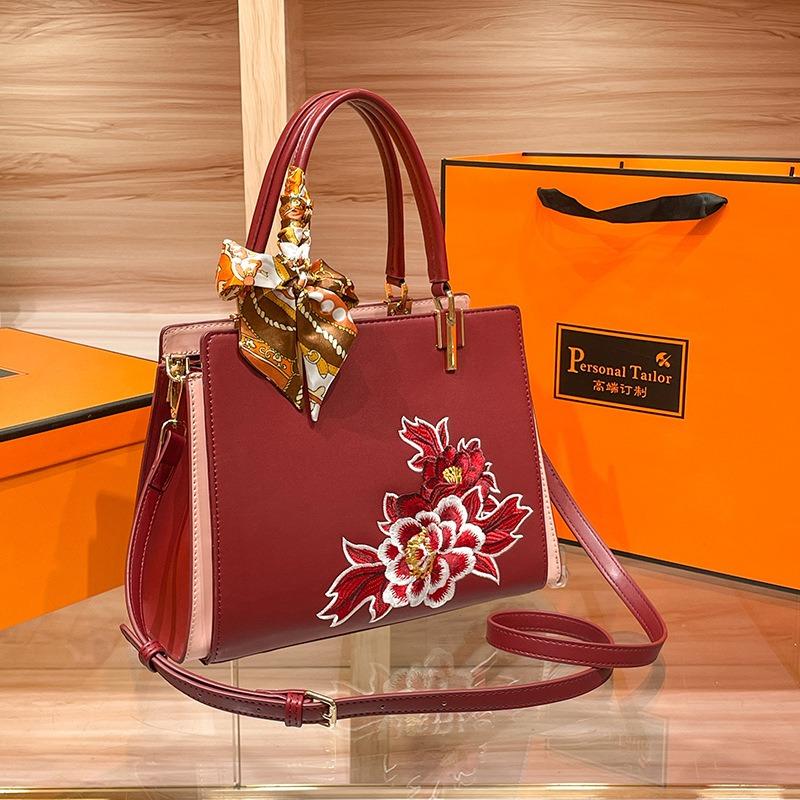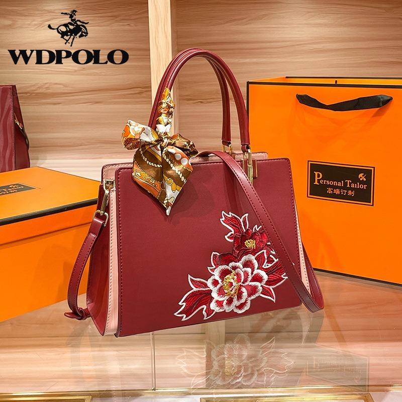 W. D. POLO, художественный дизайн в национальном стиле, новинка 2023, легкая роскошная сумка для мамы, большая вместительная легкая роскошная красная сумка с вышивкой Lotus