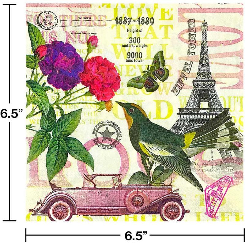 Салфетки одноразовые для вечеринок двухслойные 20 шт./упак. «Птицы и цветы Парижа» — купить товар онлайн с бесплатной доставкой по всему миру!
