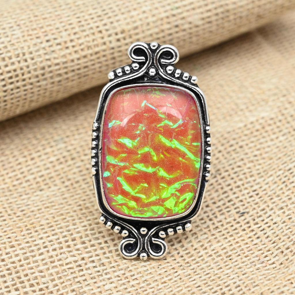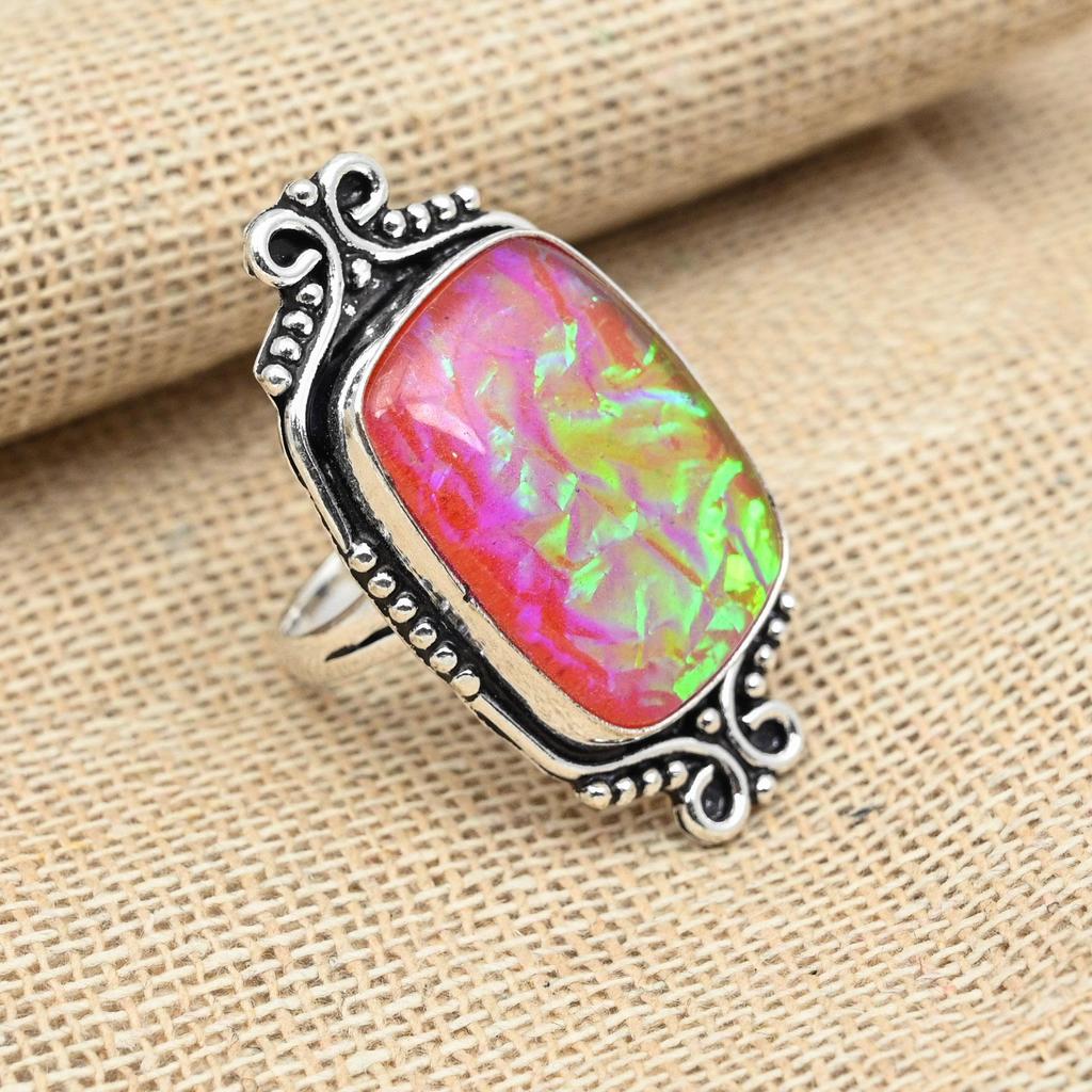 Хороший фиолетовый тройной опал ручной работы Твердый стерлинговый серебристый камень 925 Кольцо Ювелирные изделия