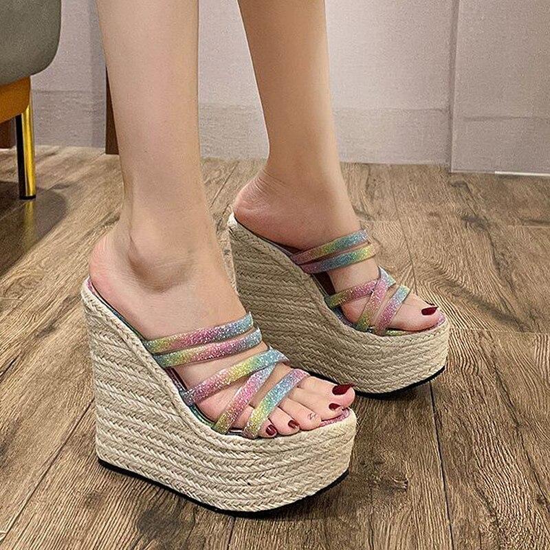 Летние женские босоножки на платформе на танкетке с плетением из пеньковой веревки «рыбий рот» на высоком каблуке — купить товар онлайн с бесплатной доставкой по всему миру!