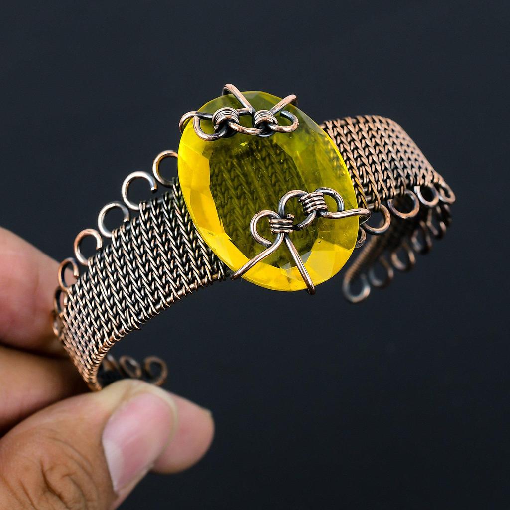 Цитрин, драгоценный камень, чистая медная проволока, завернутая в манжеты/браслет ручной работы, ювелирные изделия