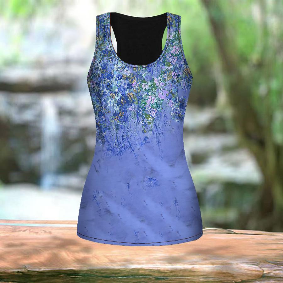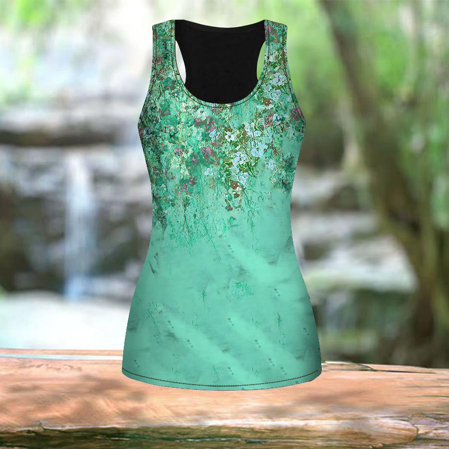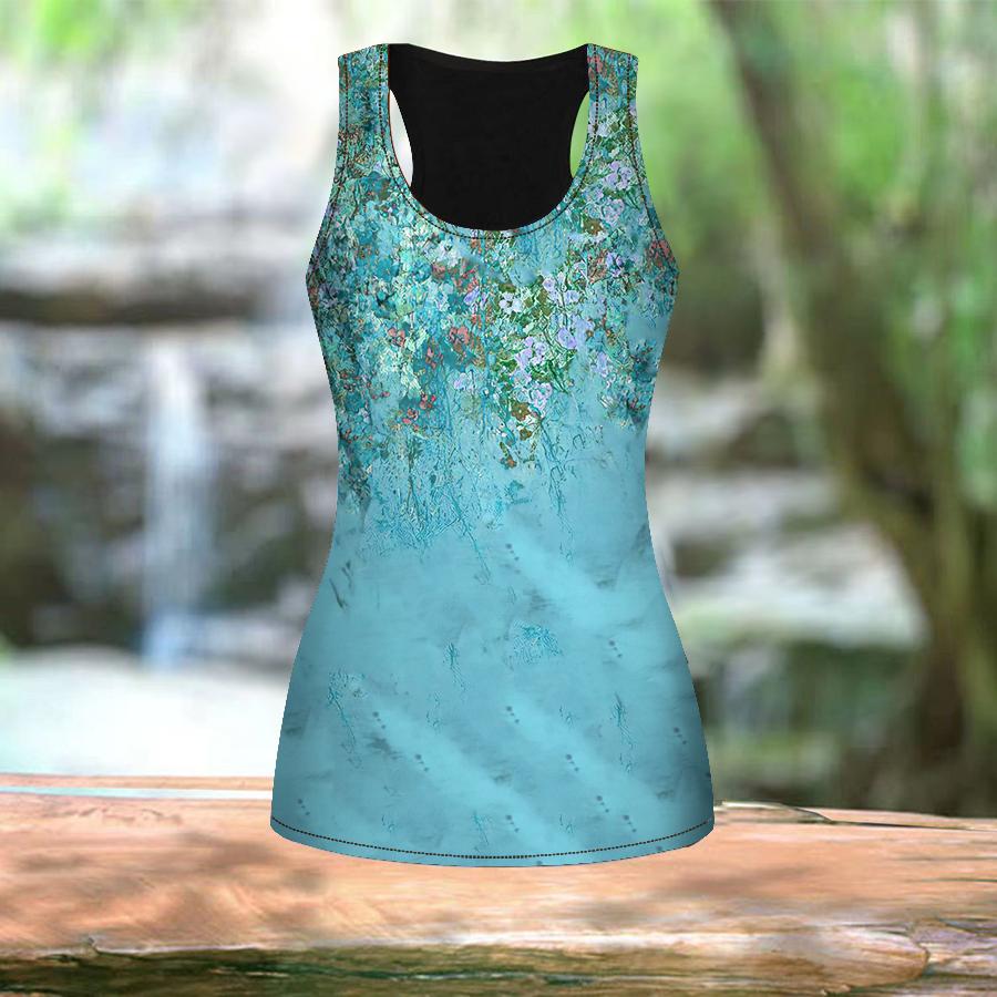 Женские летние спортивные рубашки с 3D-синим принтом морских водорослей для занятий йогой и тренажерным залом, жилеты больших размеров