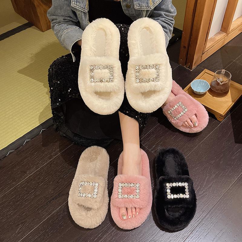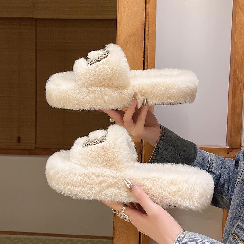 Пушистые тапочки для женщин, осенне-зимняя новая модная верхняя одежда, теплые плюшевые тапочки большого размера для женщин