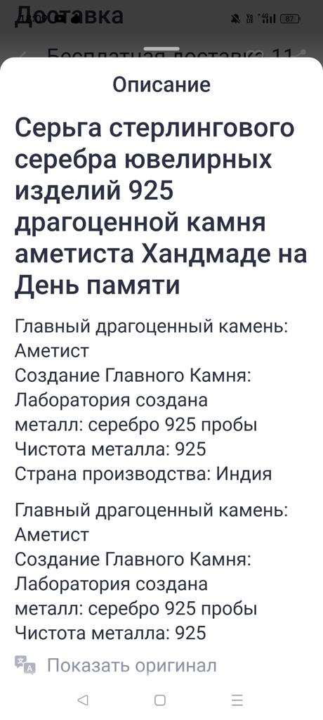 Не серебро и не аметисты, жду реакцию поддержки. Последнее фото-описание с джума. Дополняю через месяц, веду переписку, то игнорят, то требуют всё новые видео, документы о подлинности не предъявляют. Ведут себя незаконно и безобразно. Изделия ужасного качества из проволоки. Делать экспертизу дорого. Отнесла в ломбард, меня обсмеяли, как нас дураков обманывают эти узко.... Е. Это и про серьги и про кресты. НЕ БЕРИТЕ. ГОВНО ПОЛНОЕ.Других слов про изделие и отношение службы "поддержки" У меня нет. Издеваются и игнорят. Ни одного подтверждения. Смотрите в новостях