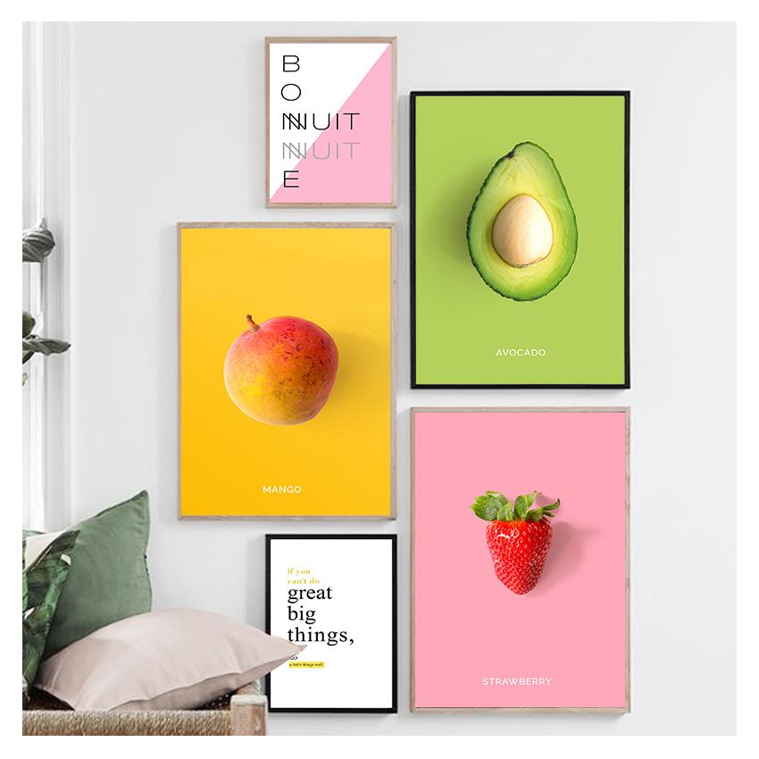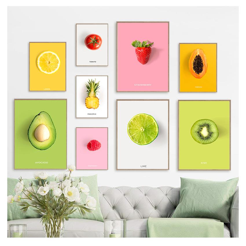 Плакаты с авокадо, ананасом, клубникой и киви, детская столовая, гостиная, принты, скандинавская живопись, домашний декор, 16 фотографий с фруктами