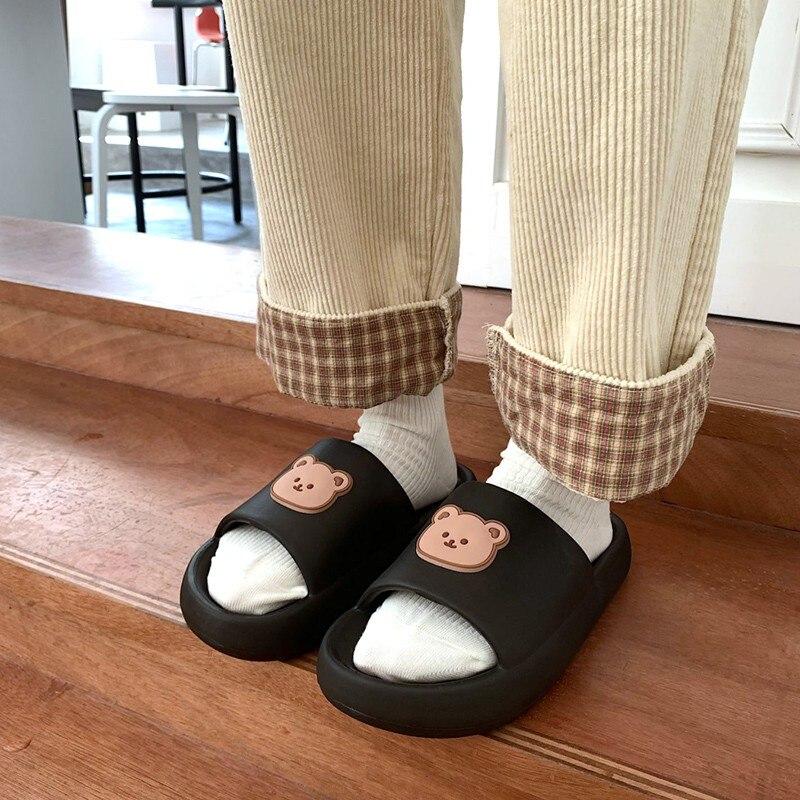 Женские и мужские летние тапочки, сандалии, пляжные шлепанцы, шлепанцы с рисунком медведя, обувь унисекс на толстой подошве для мальчиков и девочек