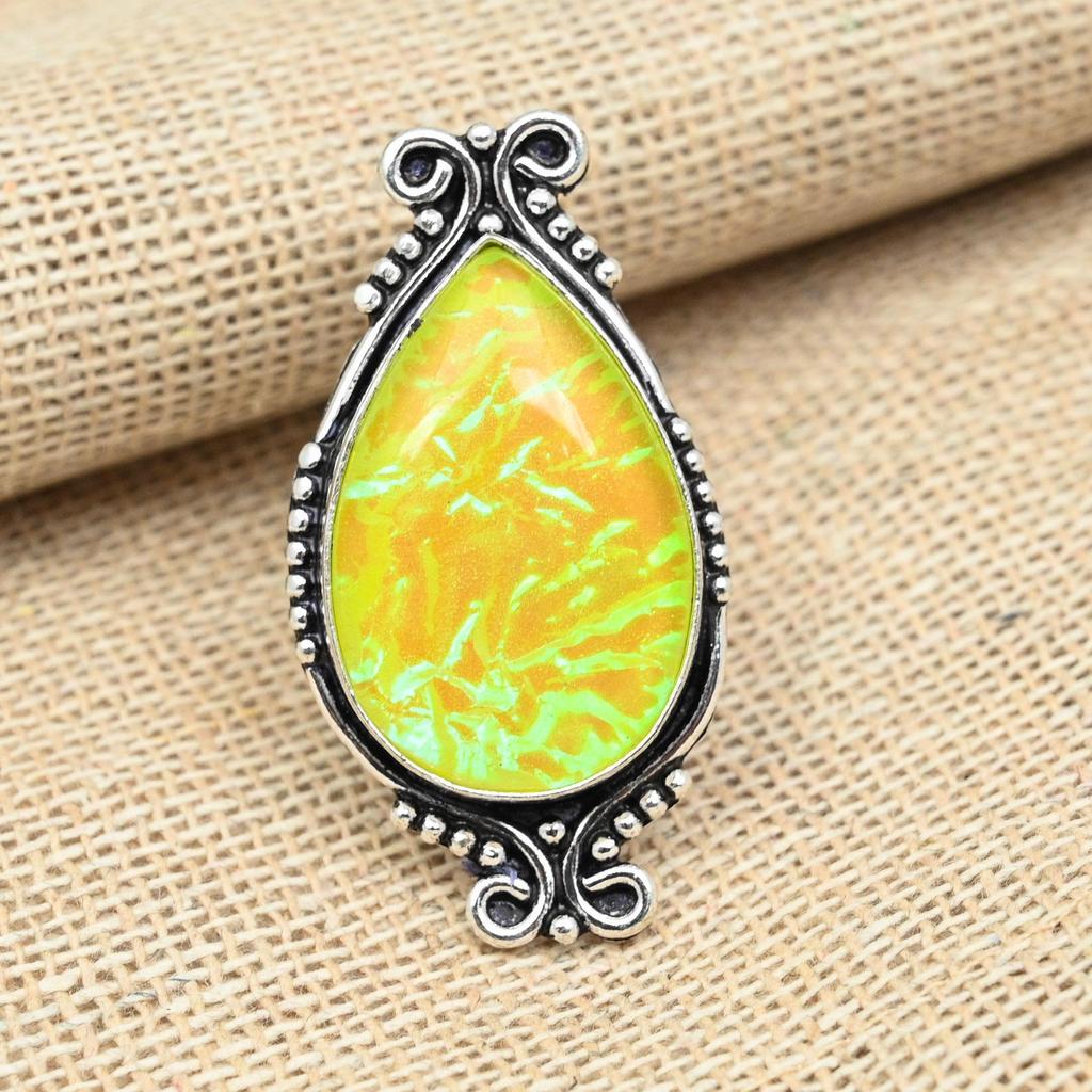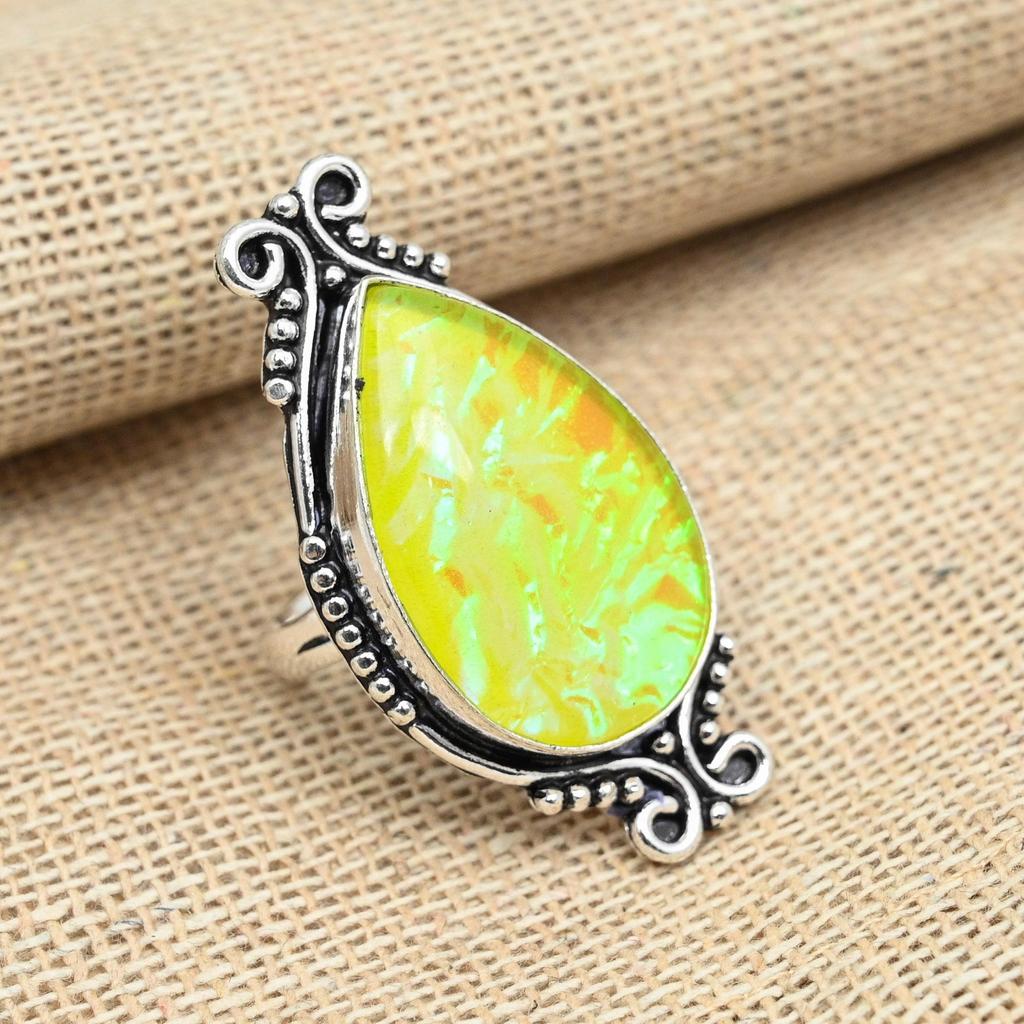 Красивое кольцо ручной работы из твердого серебра 925 пробы с австралийским желтым тройным опалом и драгоценным камнем