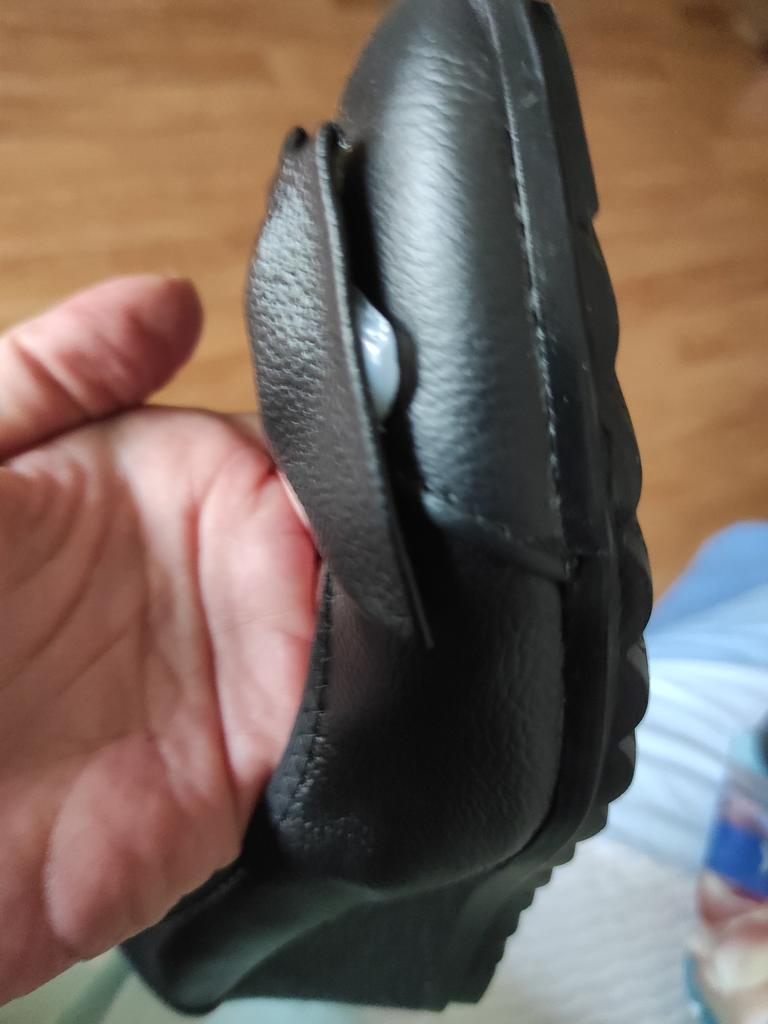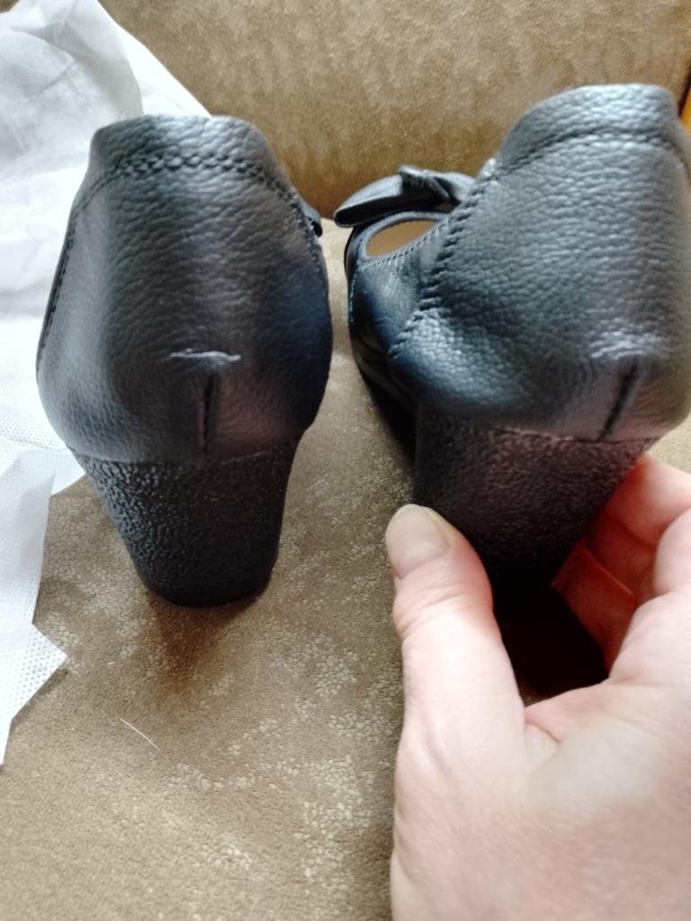 Всем доброго времени суток🙌🙌🙌 🙋♀️!!! Получила женские туфли. Моë очередное разочарование🤦♀️😢. Вроде бы визуально туфли не плохие, но при примерке и более тщательном рассмотрении, начали выявляться недостатки 🧐🤨😳☹️. Правый туфель оказался более широкий, чем левый, пятка снять, туфель при ношении, заваливается набок, пятка "гуляет", на левом туфле, на пятка, трещина. Каблук сильно скошен вперëд, из за этого обувь теряет устойчивость, платформа проседает под весом тела, на мысе, под бантом, большие пятна клея😤😡. Вообщем очередное разочарование 🤯. Обидно, ждëшь, ждëшь, потом бац... ВСЕМ МИРА, ДОБРА И УДАЧНЫХ ПОКУПОК🛍 🎁🎁🎁💓!!!