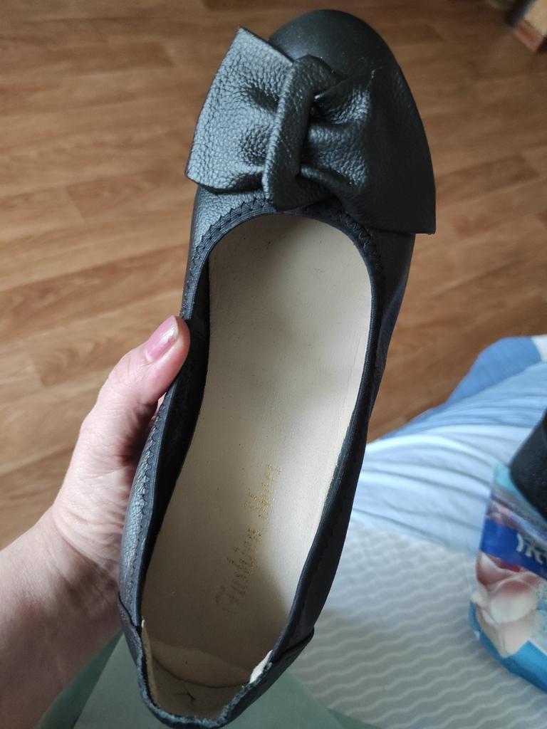 Туфли сами по-себе не плохие. Всегда, прежде чем делать заказ, читаю отзывы. На свою ногу 38 размера беру 25,5, те больше на размер получается, 39.Всегда всё подходило, без претензий...! Но получив долгожданные туфли, пометив их, поняла, что слишком малы... ходить невозможно в них. Расстроена очень....! Как быть не знаю. Так же, на 2фото видно, какая хрень торчит из-под бантика..... Это похоже клей так наляпан. Расстроена очень, обращусь в службу поддержки. Позже дополню отзыв. Дополняю:служба поддержки отреагировала моментально. Возместили 50% стоимости.