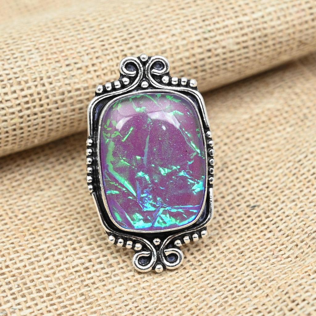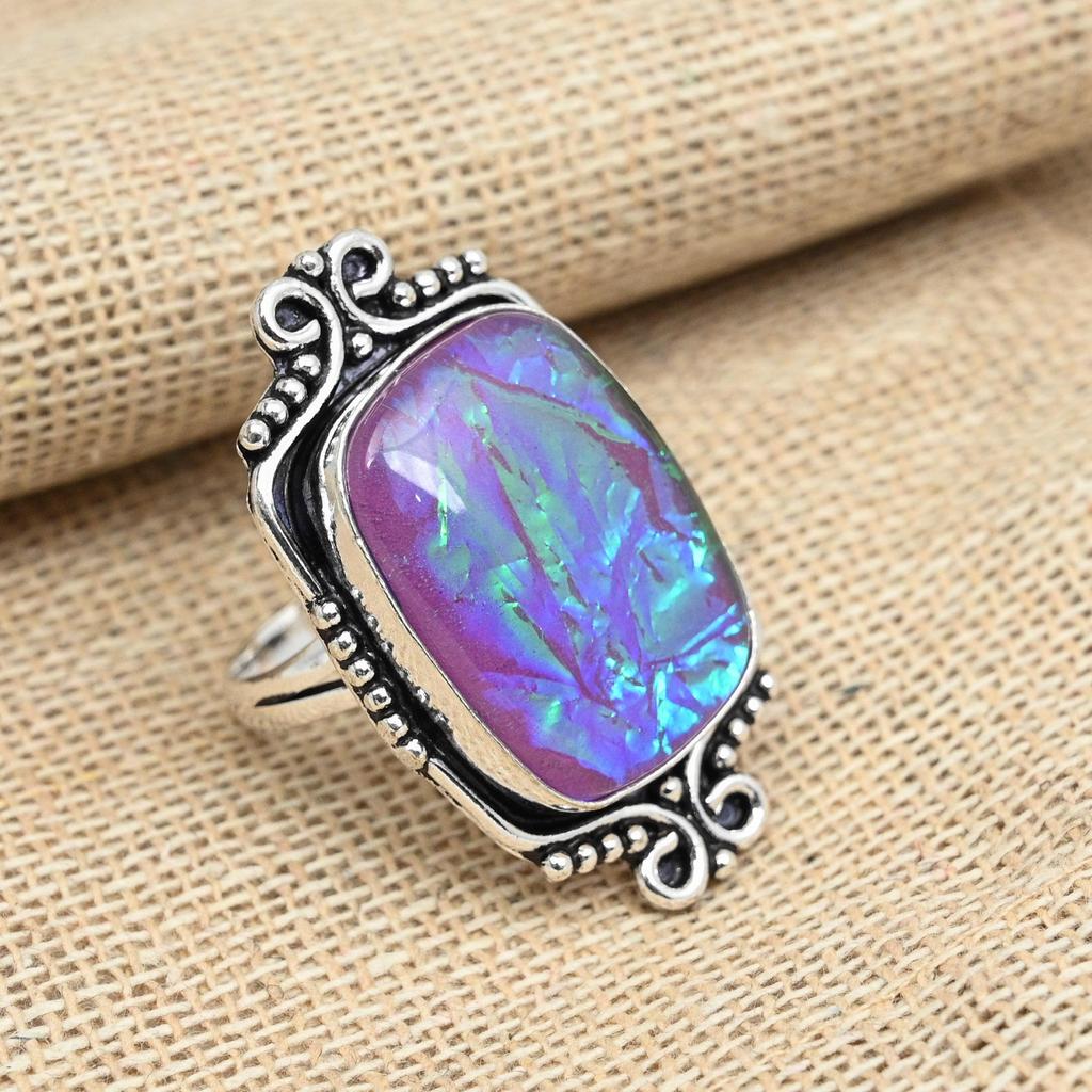 Дизайнерское ювелирное кольцо ручной работы из стерлингового серебра 925 пробы с розовым тройным опалом и драгоценным камнем