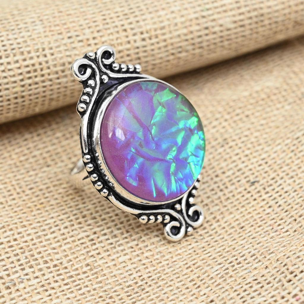 Розовый тройной опал, драгоценный камень, кольцо из стерлингового серебра 925 пробы, ювелирные изделия ручной работы круглой формы