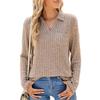 Вязаный свитер с v-образным вырезом и отложным воротником, длинными рукавами, осень-зима, однотонный тонкий свитер, джемпер, женская одежда