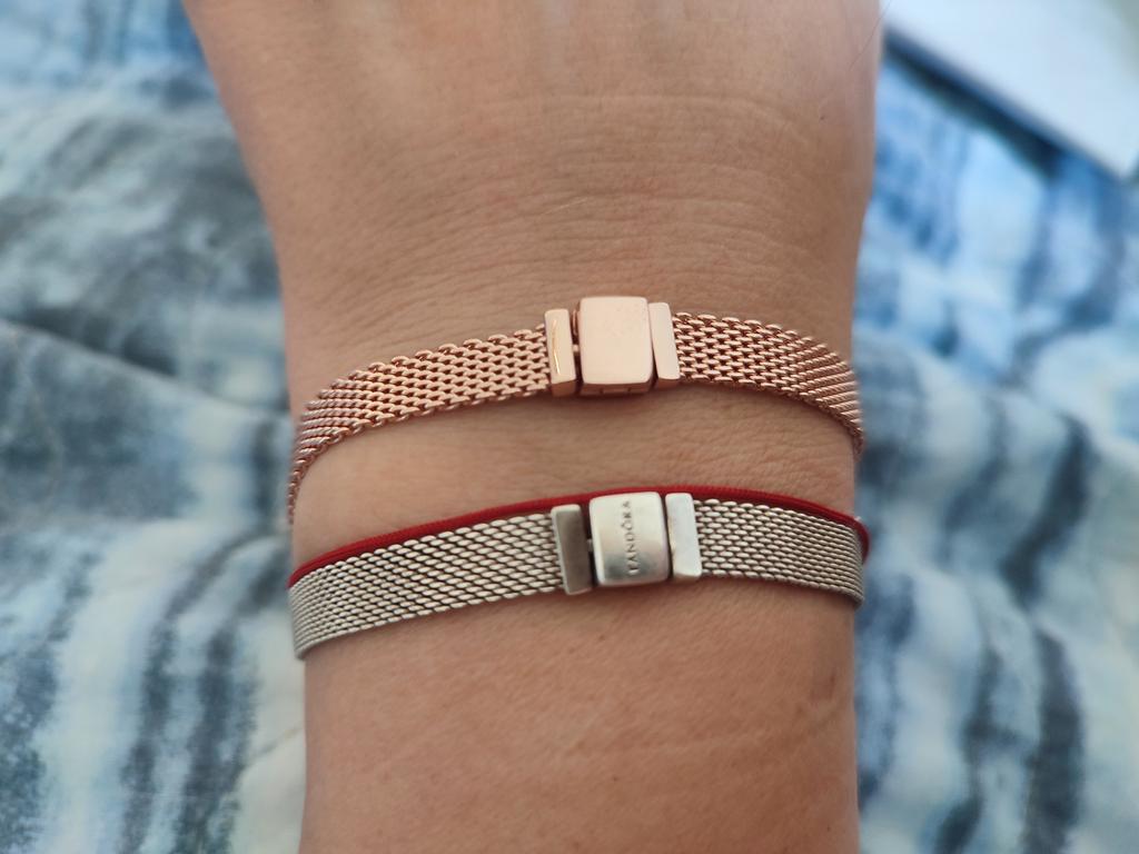 Долгожданный браслет пришел в срок. Прикрепила фото, где серебряный браслет Pandora и браслет цвета красного золота с сайта Джум. Браслет порадовал меня качеством, замочек открылся быстро,проверю в носке. Обязательно закажу себе и браслет жёлтого золота.