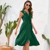 GUMXIA женские модные летние весенние однотонные повседневные платья с длинным рукавом и v-образным вырезом и высокой талией