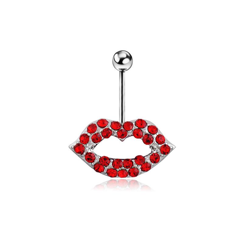 Сексуальные красные губы, пряжка для пупка, изысканная мода, инкрустация бриллиантами, губы, пупок, кольцо в пупке