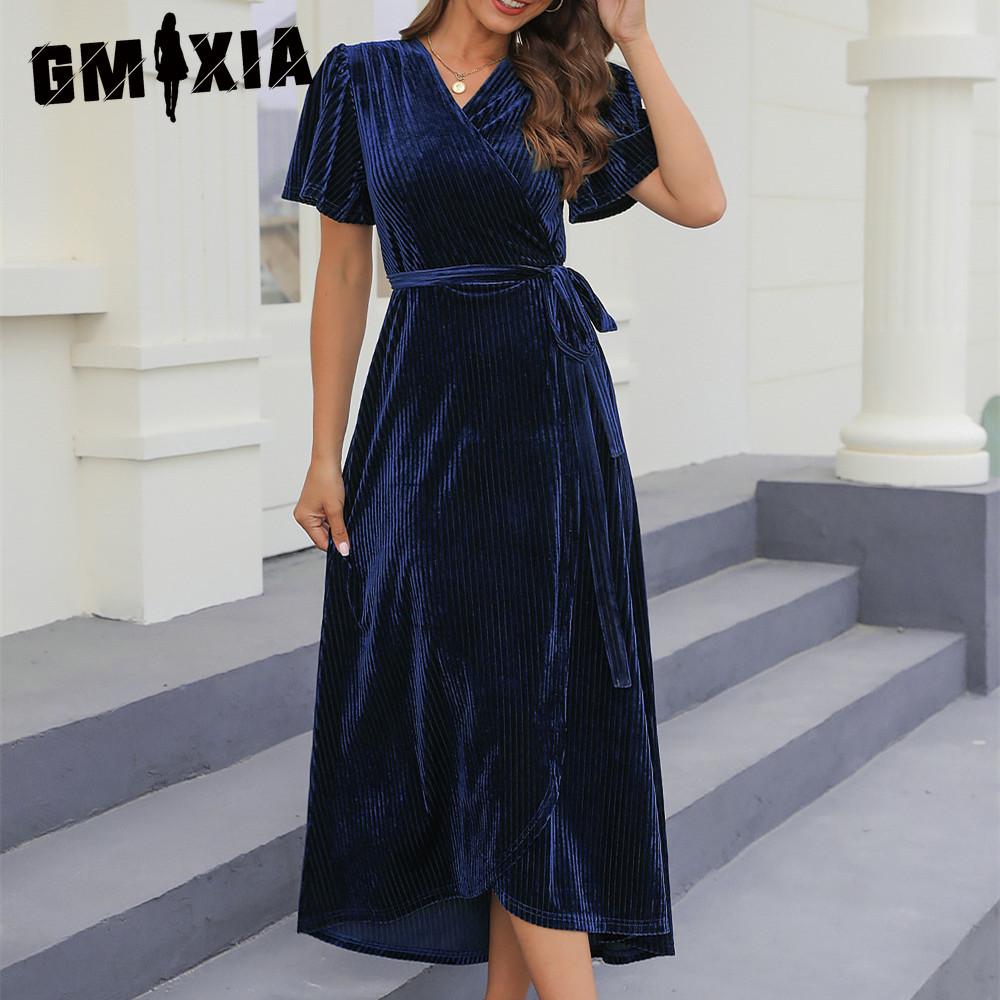 GMXIA Женские модные летние весенние однотонные повседневные платья с короткими рукавами и v-образным вырезом с принтом — купить товар онлайн с бесплатной доставкой по всему миру!
