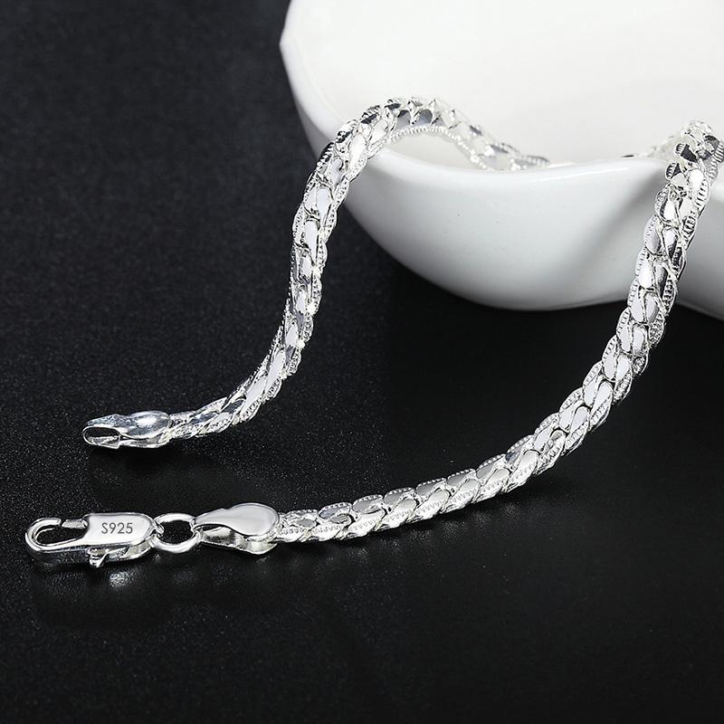 Модный Шарм s925 Серебряный Мужской и Женский Серебряный Браслет 5 ММ Боковая Цепочка Роскошные Ювелирные Изделия Свадебная Вечеринка Рождественский Подарок