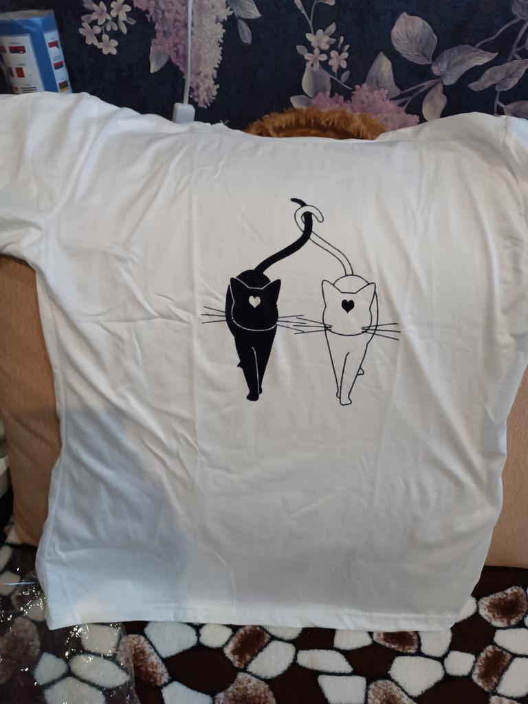Ткань прятна к телу, запаха небыло) ниточки вообще не точат. Рисунок на самой ткани (не наклейка) по размеру всё как написано длинная и рукова не в обтяг