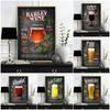 Современный черно-белый ретро пиво, фрукты, промышленные напитки, настенная живопись, холст, живопись, постеры, изображение для барной комнаты, домашний декор