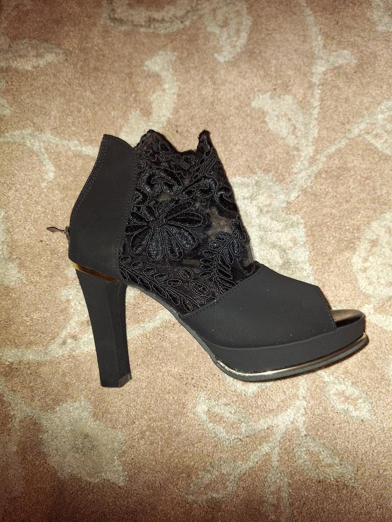 Босоножки с сетчатым грубым каблуком и кружевом «рыбий рот»