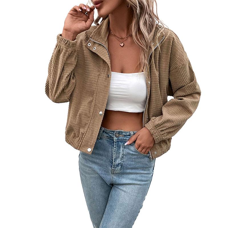 Осенне-зимняя женская куртка. Вельветовая женская куртка с длинными рукавами.