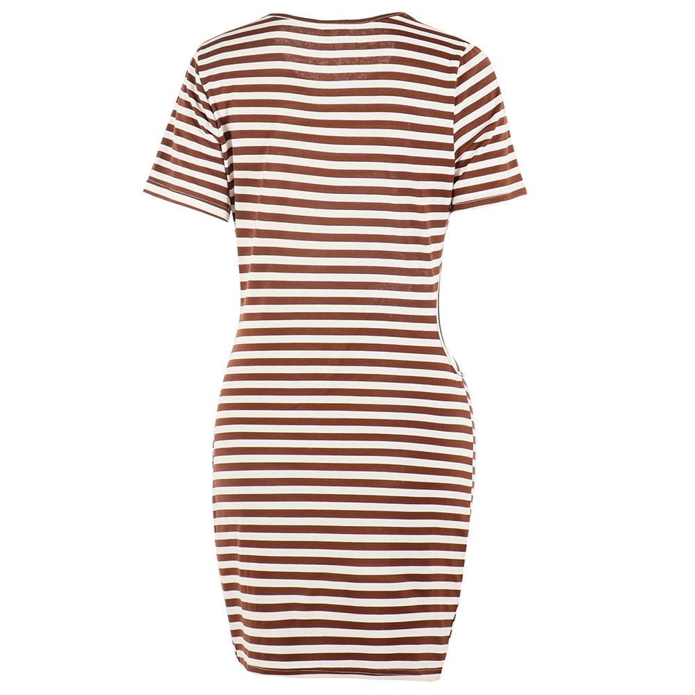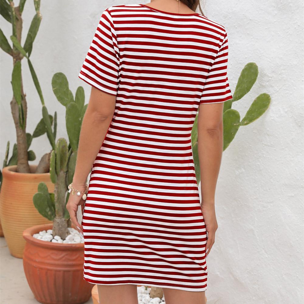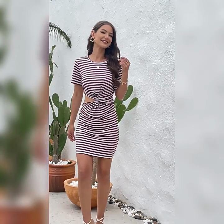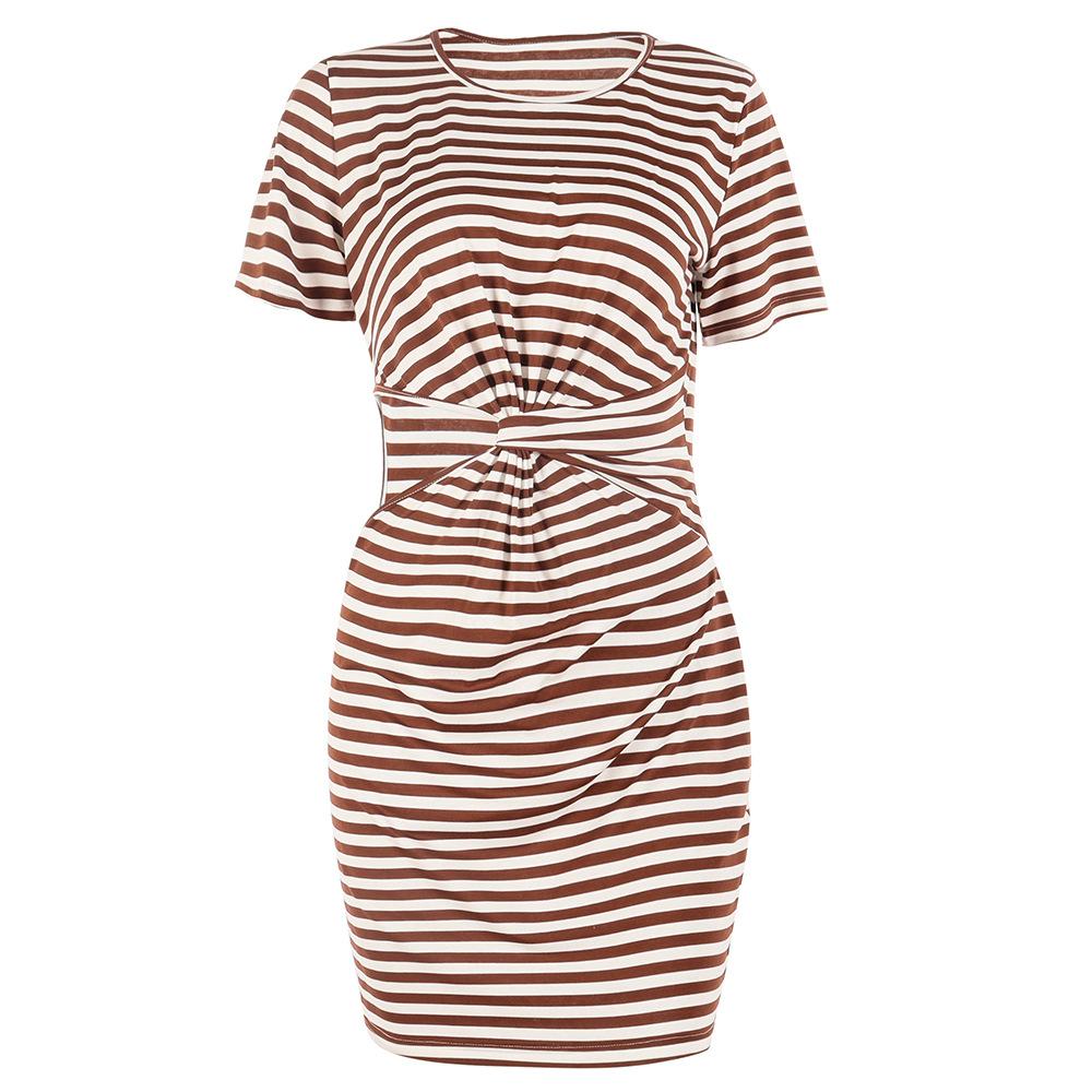 GMXIA Женская мода лето весна сплошной полосатый принт с коротким рукавом и круглым вырезом с высокой талией повседневные платья
