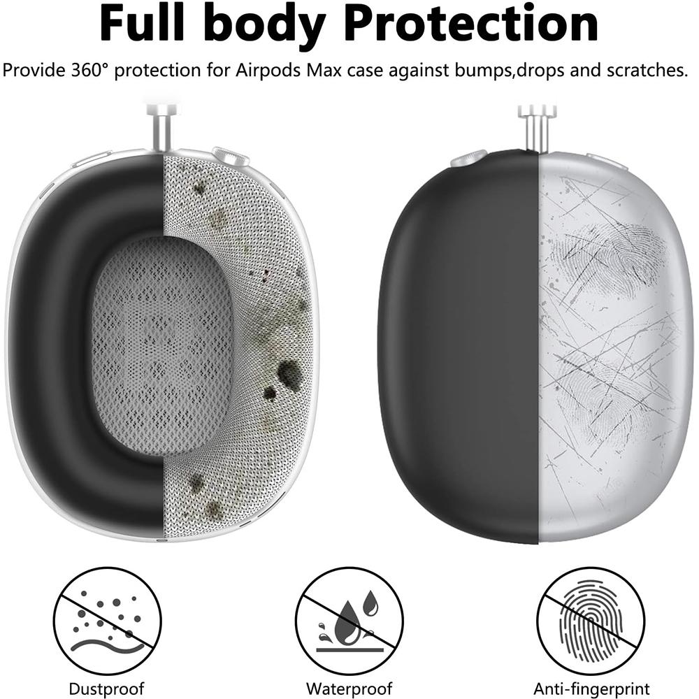 Чехол, изготовленный из прочного силиконового материала премиум-класса, обеспечивает защиту наушников AirPods Max на 360° от ударов, падений и царапин. Защита от отпечатков пальцев, царапин, пыленепроницаемость и водонепроницаемость.
