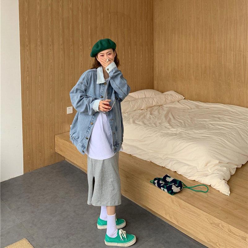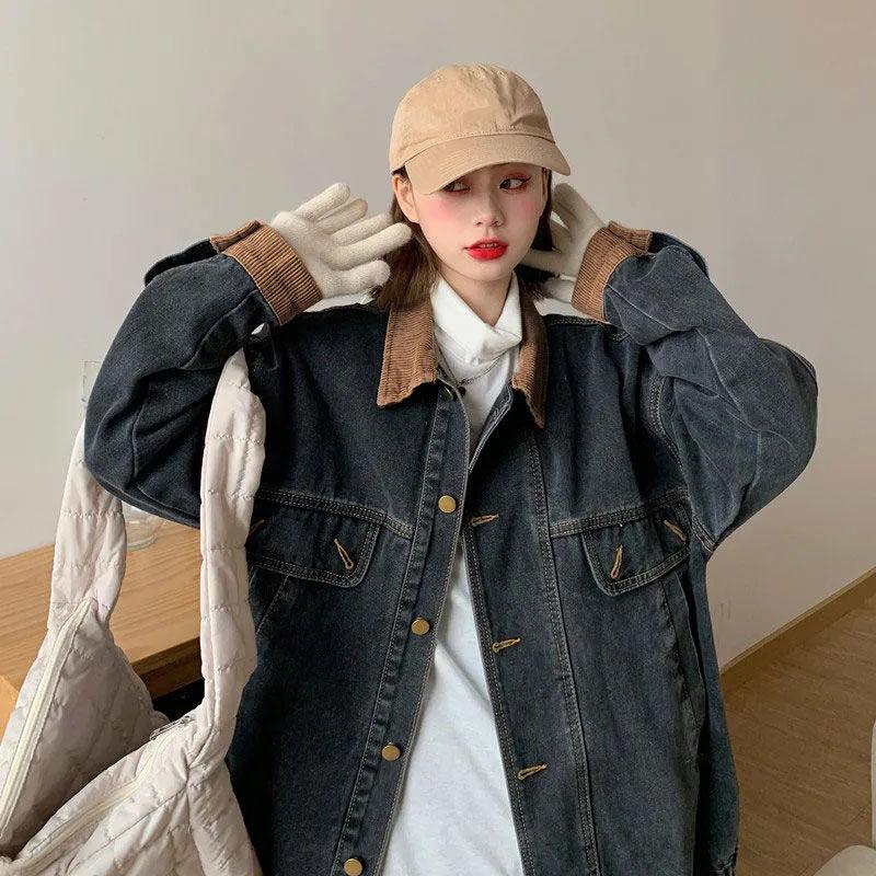 Джинсовая куртка больших размеров, женская повседневная свободная удобная куртка на пуговицах, винтажные топы с длинными рукавами