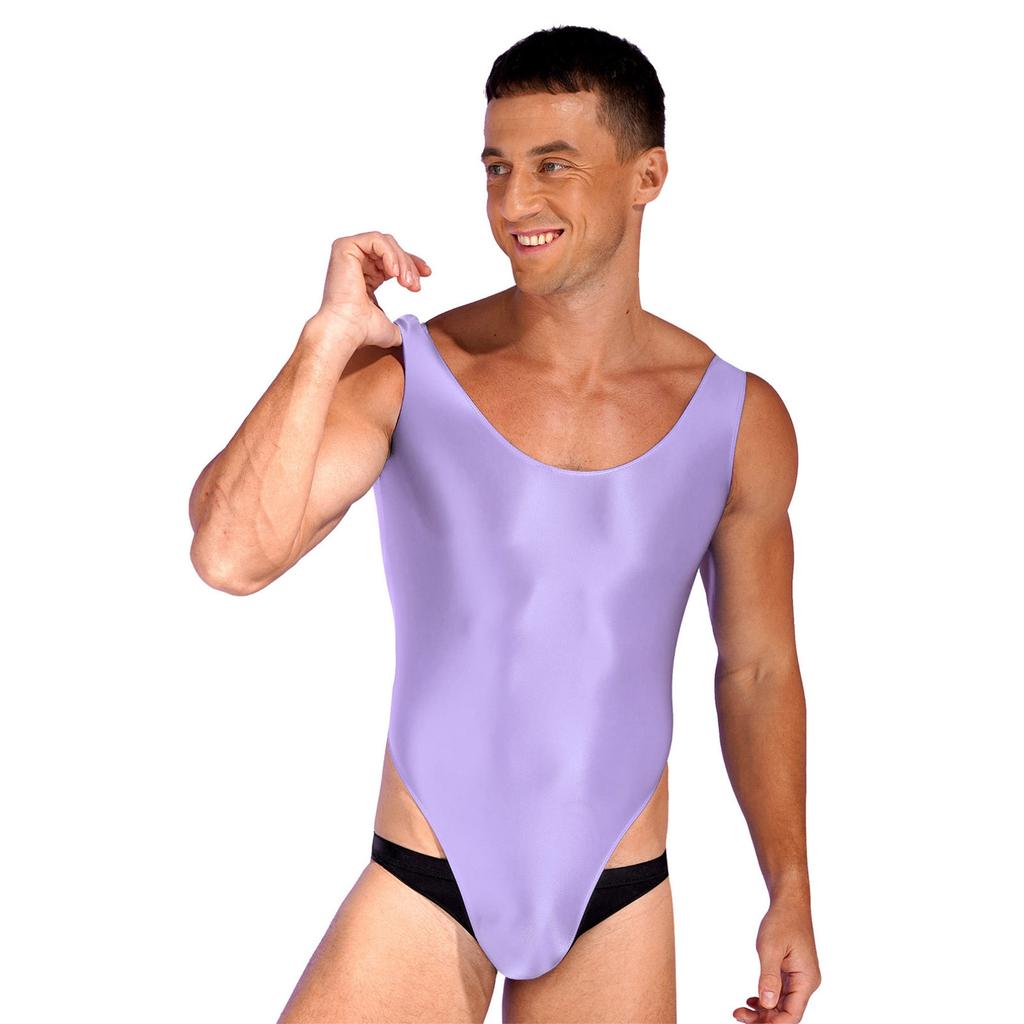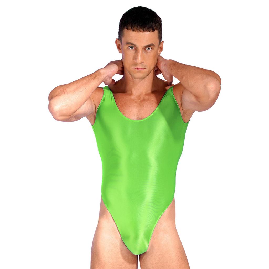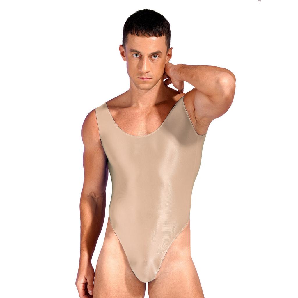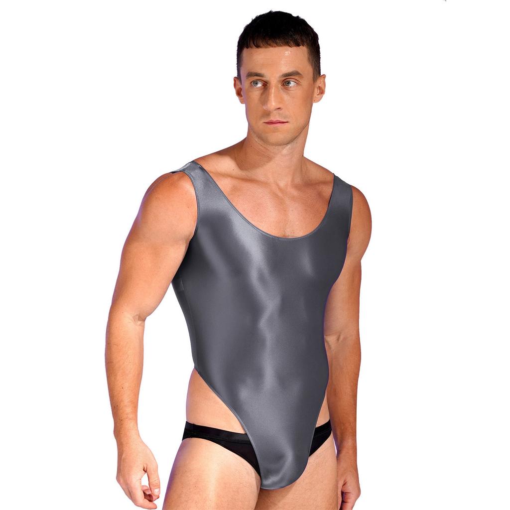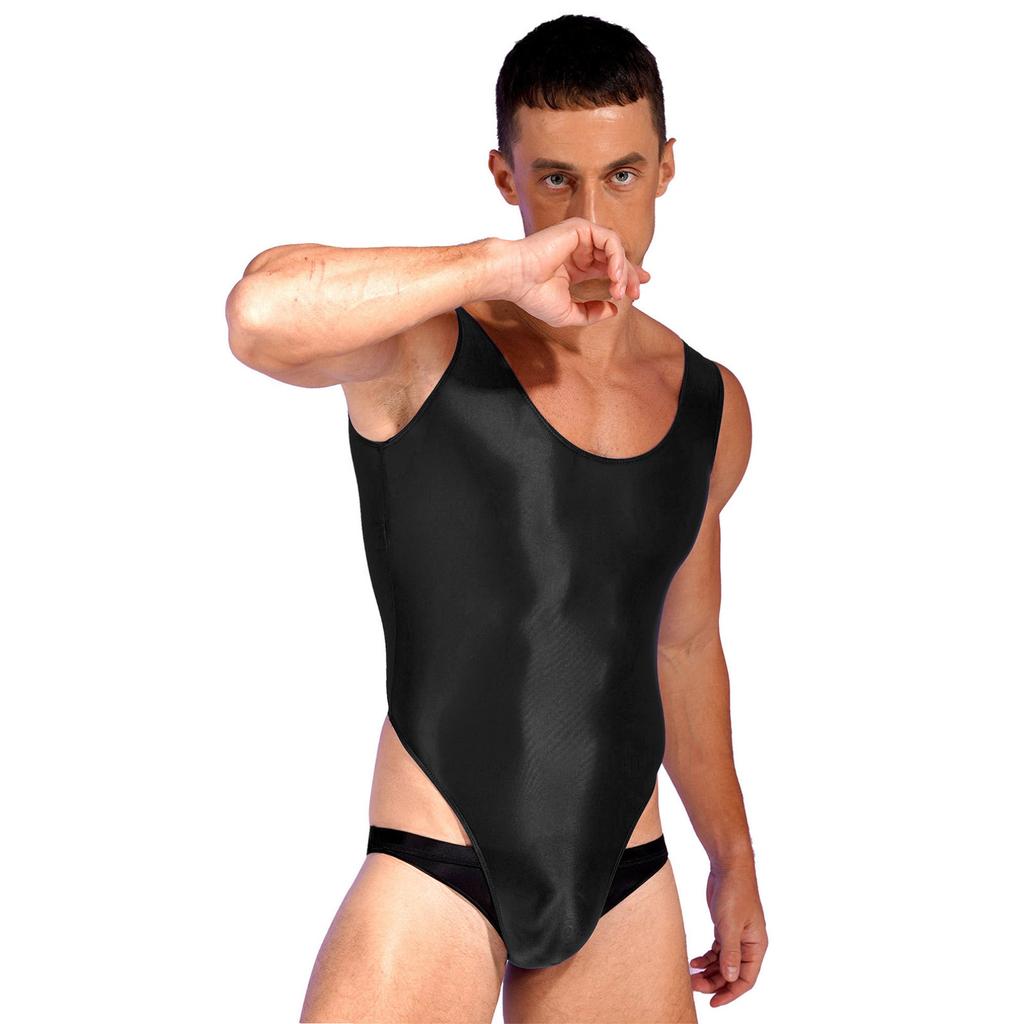 Мужской глянцевый боди с высоким вырезом без рукавов, цельный купальник для занятий спортом, фитнесом, плаванием