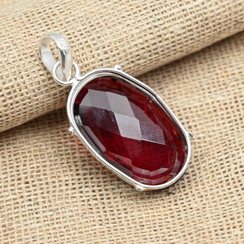Кулон ручной работы из стерлингового серебра 925 пробы из стерлингового серебра 925 пробы с граненым гранатом