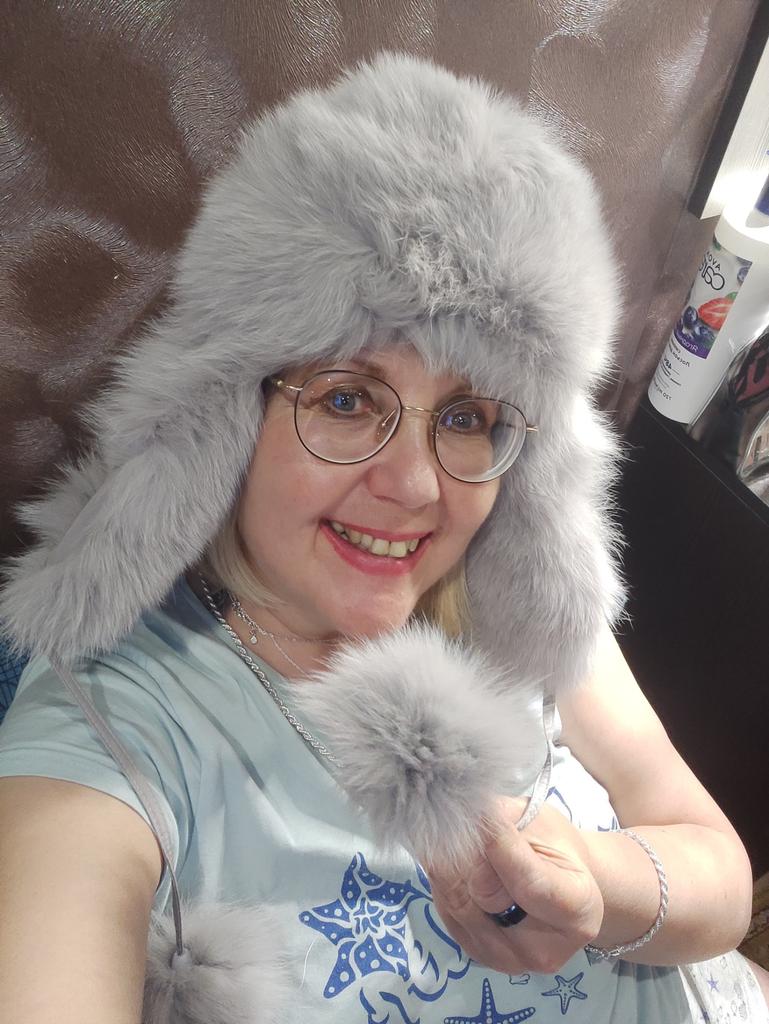 Прикольная необычная шапочка из искусственного меха заказала серенького цвета универсального чтобы подошла к моей верхней одежде мех густой пушистый запаха нет практически мне нравится прекрасные помпоны